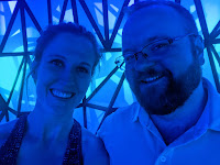 Obviously, these men remained strangers and not the super rad man I grew up with. He wouldn't be standing still in that line. He would probably be talking to someone nearby with that old twinkle in his eye (I swear it twinkled when he smiled). It would be a pretty useful tool to cheer others in the pandemic, the blue glittering above his facemask. On the airplane he would probably be holding a thick fantasy or science fiction book in his hands, the kind with pictures that look like they were produced in 1975.